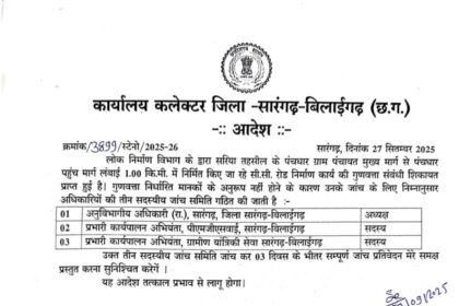 सारंगढ़-बिलाईगढ़, 28 सितंबर 2025।ग्राम पंचायत पंचधार की जनता के सब्र का बांध आखिरकार टूट ही गया। मुख्य सड़क से गांव तक 1 किलोमीटर लंबाई में बनी सीसी रोड पर घटिया…