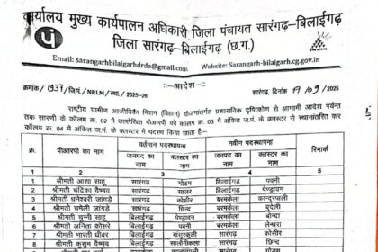 बिहान योजना में गड़बड़ी पर जिला CEO की कड़ी कार्यवाही – पीआरपी का तबादला आदेश जारी, पारदर्शिता लाने की बड़ी पहल